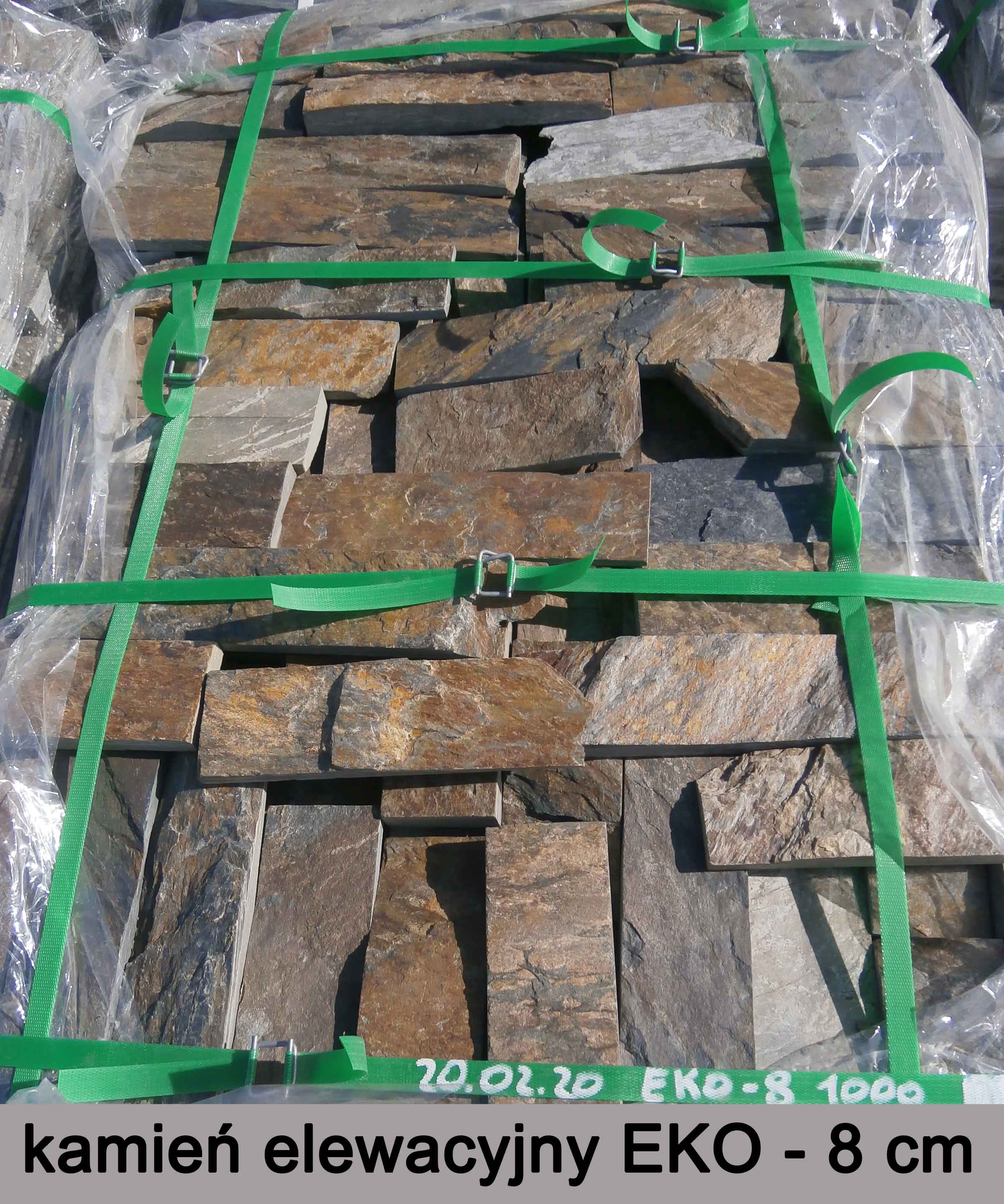 Kamień elewacyjny EKO ma formę płytkową łamaną. Przybiera różne kształty. Posiada krawędzie zarówno cięte, jak i łupane, co nadaje mu niepowtarzanego charakteru.