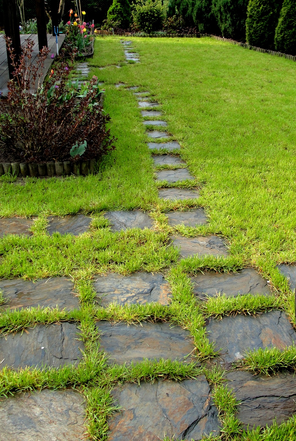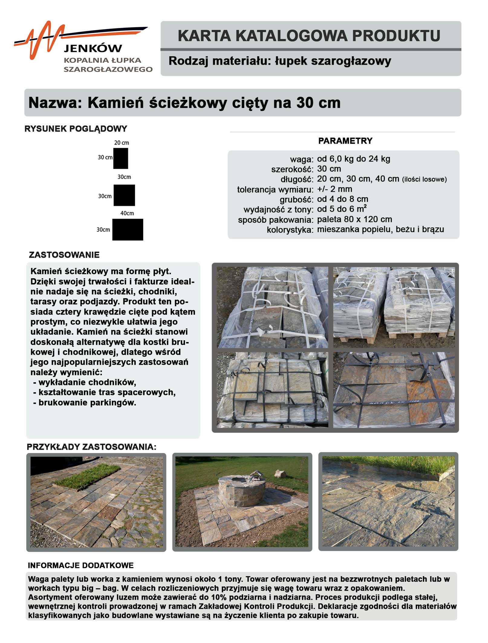 Kamień w formie płytkowej. Doskonale sprawdza się jako materiał na ścieżki, chodniki, tarasy oraz podjazdy. Kamień posiada cztery krawędzie cięte pod kątem prostym, co znacząco ułatwia jego układanie. Jest również doskonałą alternatywą dla kostki brukowej i chodnikowej. Jest to typowy kamień ogrodowy.